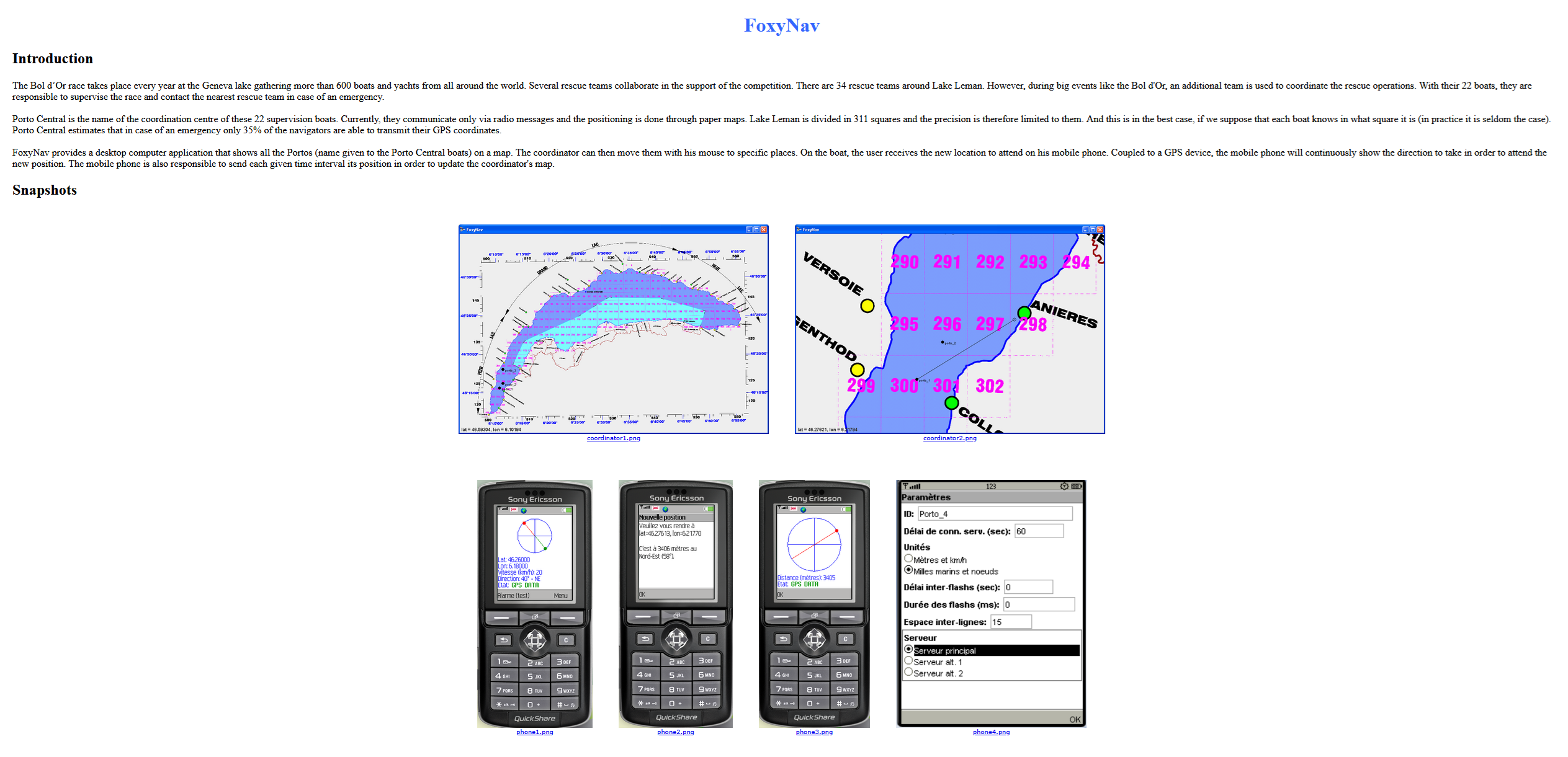 | FoxyNav | Locating and managing rescue boats during the Bol d'Or nautical contest | 2006-2007 |