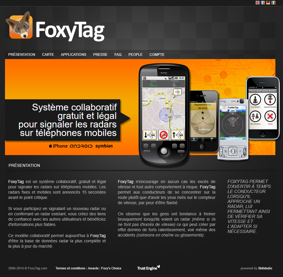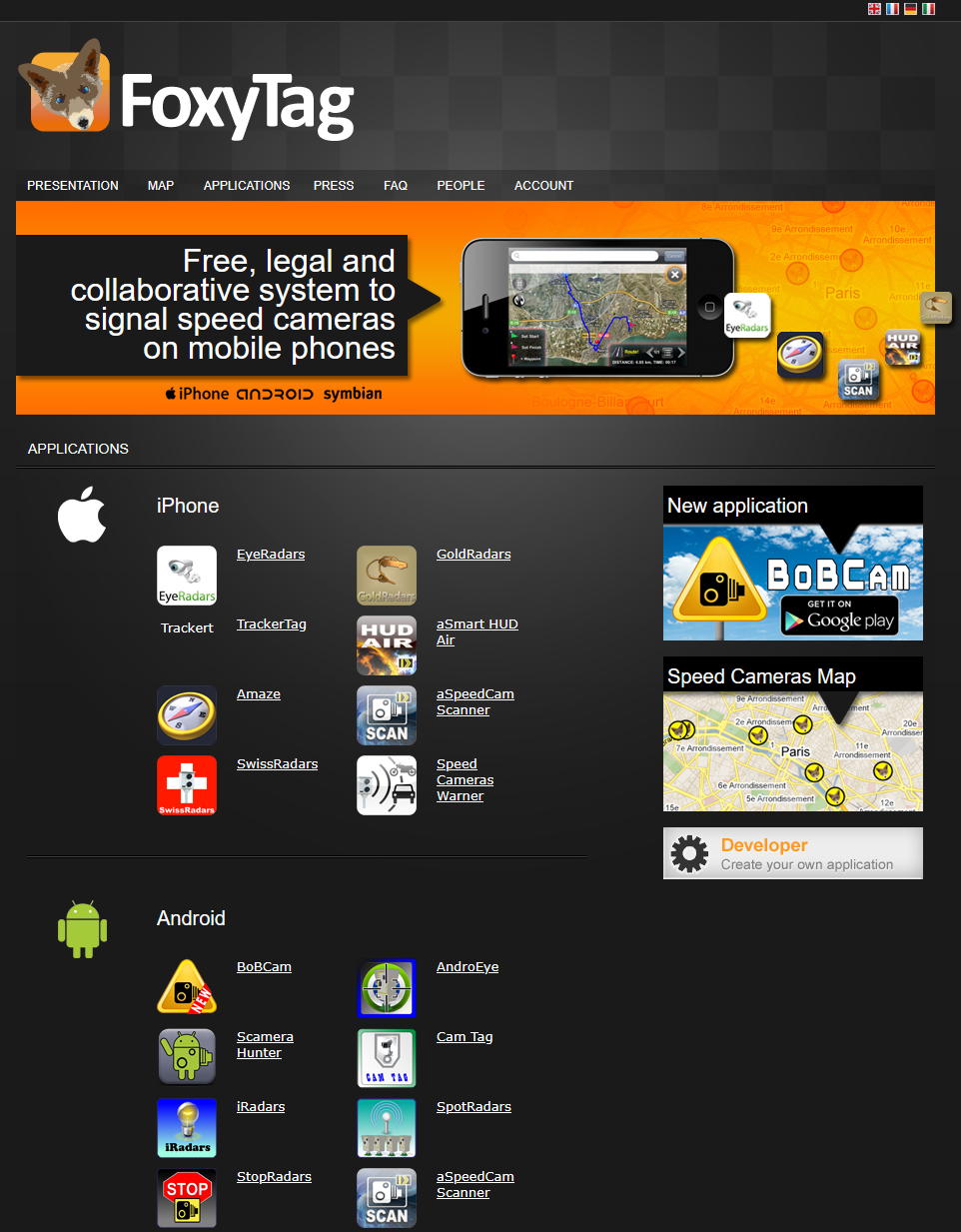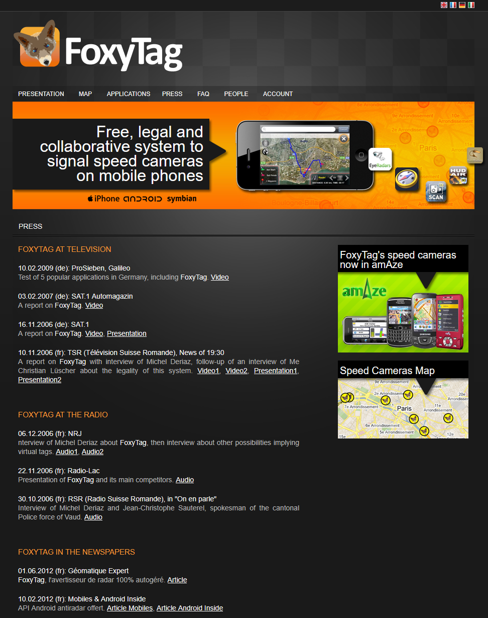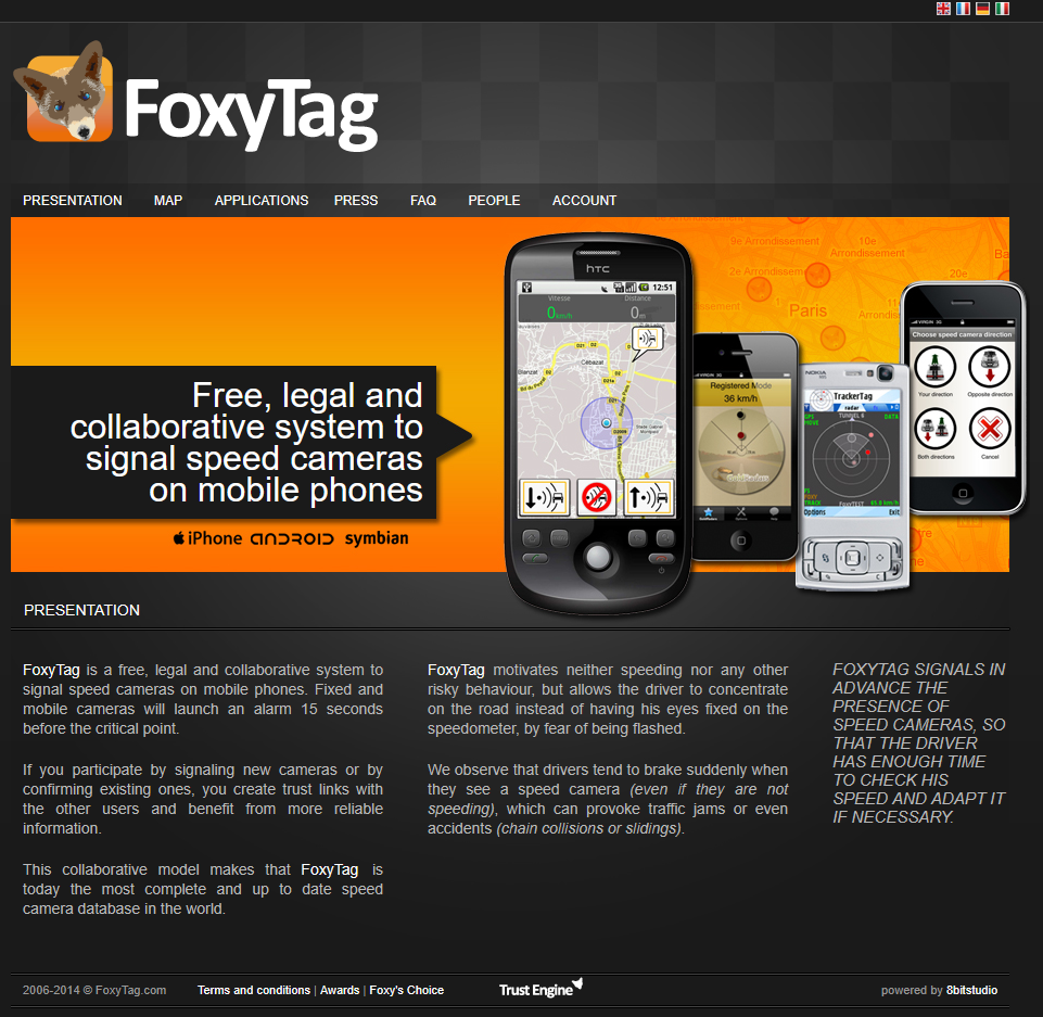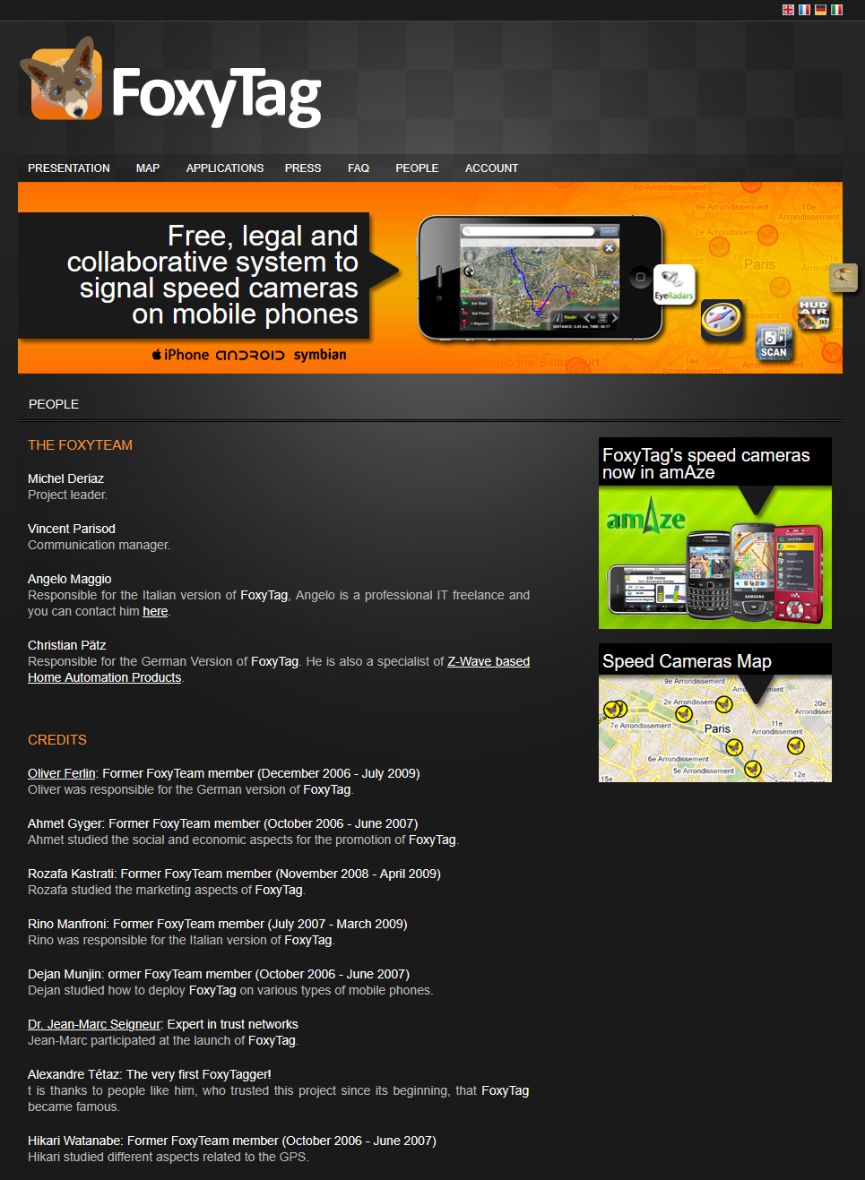 | FoxyTag | A free, legal and collaborative system to signal speed cameras on mobile phones | 2006-2013 |