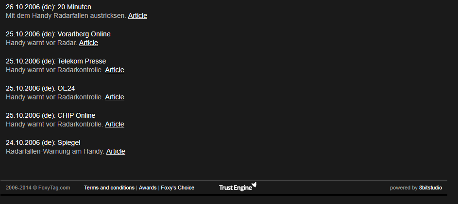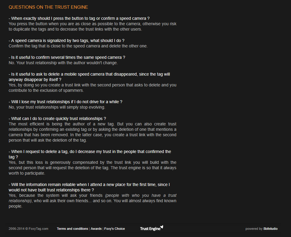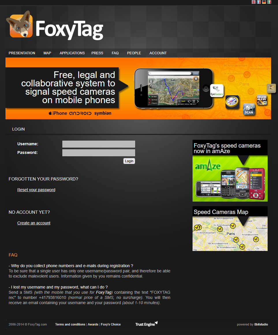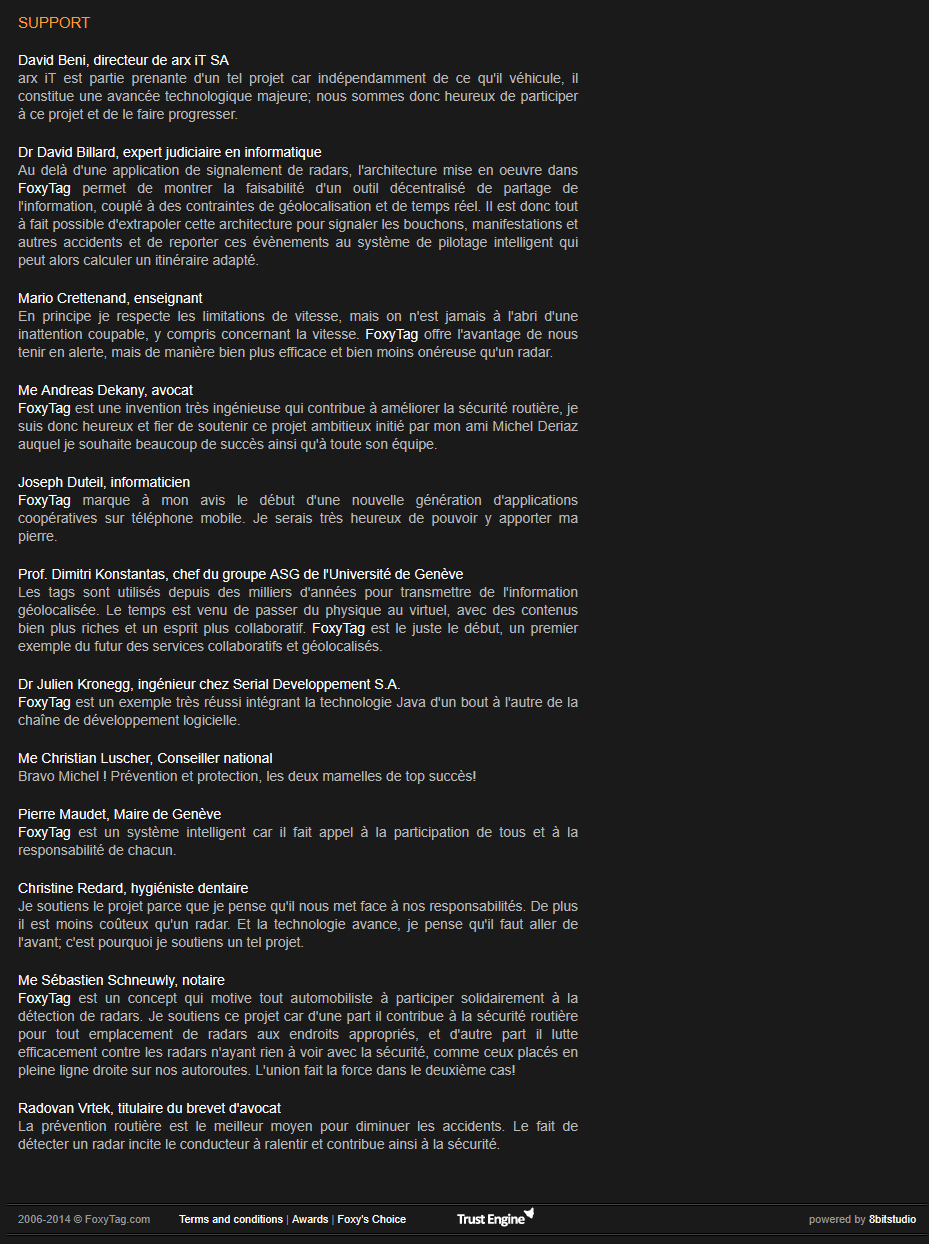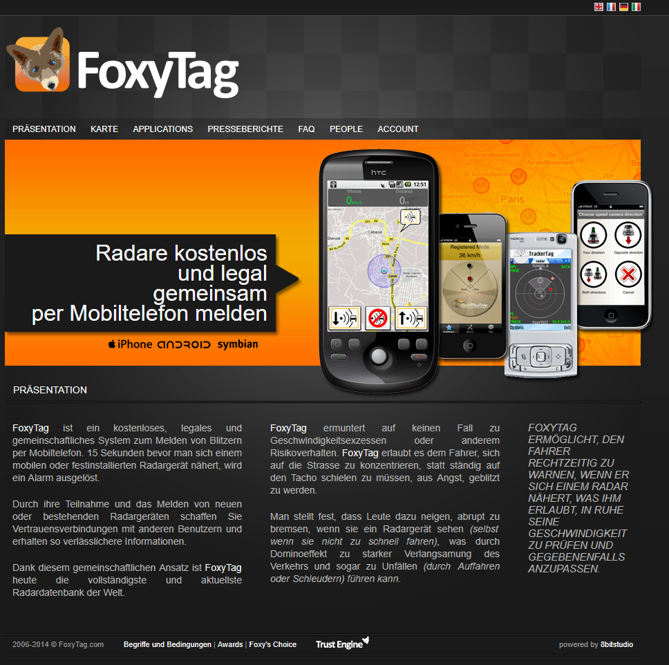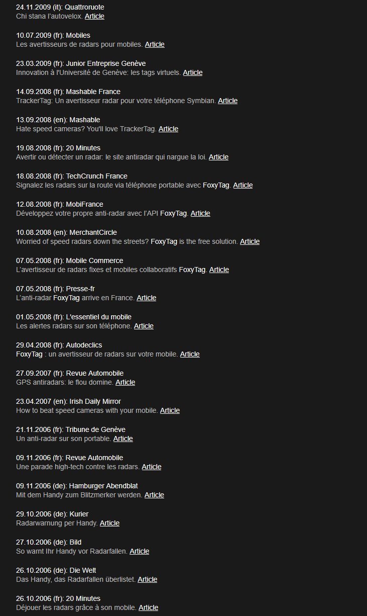 | FoxyTag | A free, legal and collaborative system to signal speed cameras on mobile phones | 2006-2013 |