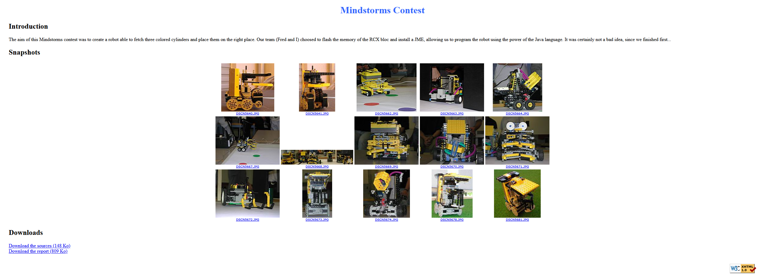 | Mindstorms Contest | A Lego Mindstorms RCX robot programmed with the Java micro edition language | 2002 |