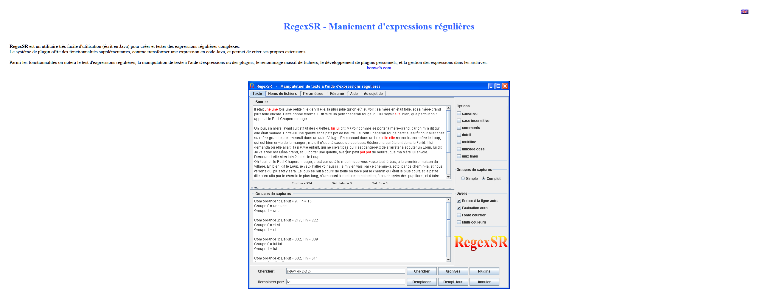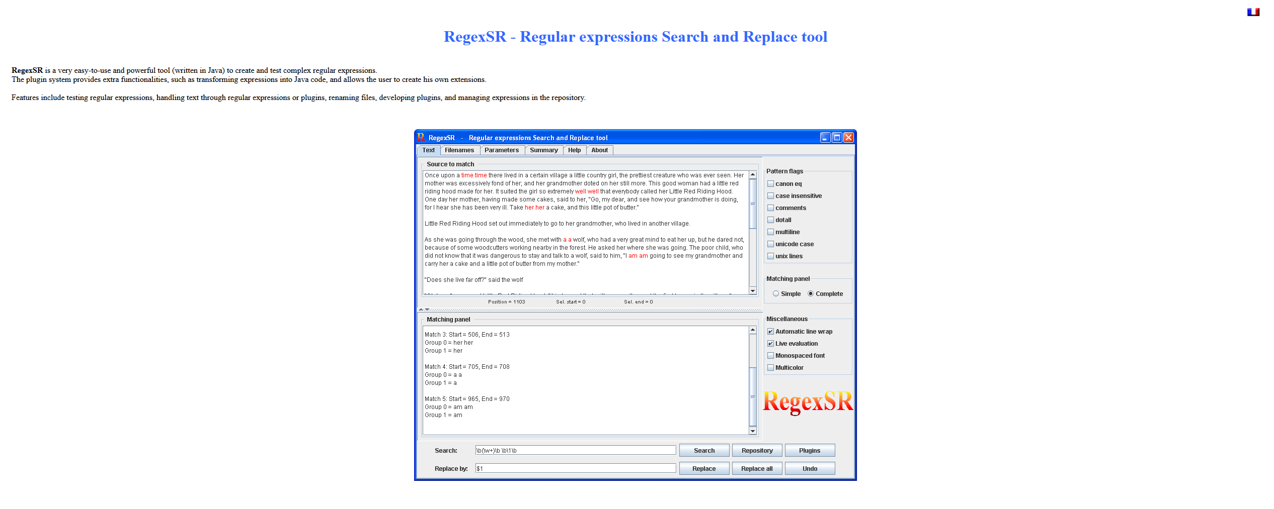 | RegexSR | A very easy-to-use and powerful tool to test and create complex regular expressions | 2004 |